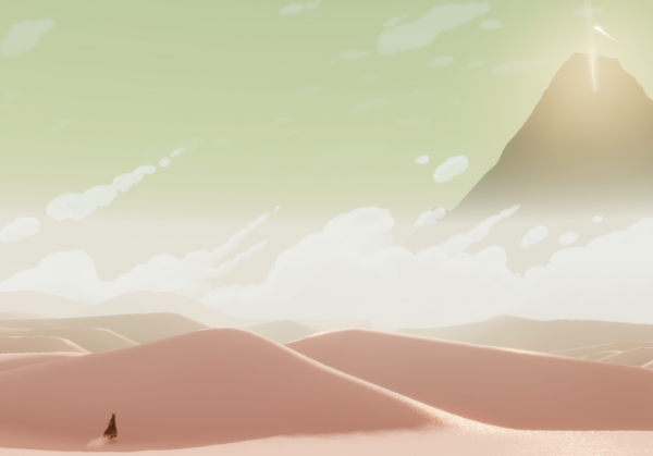 I say Journey is Thatgamecompany's first traditional title because you can look at screenshots of it and surmise it's some kind of puzzle platformer. You play as a mysterious figure who is wandering the desert and exploring what seems like the ruins of a lost civilization.