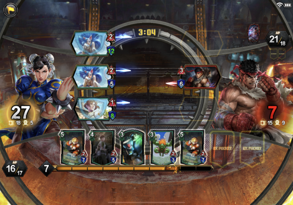 This isn't to say there is no way to play instant affects in TEPPEN. Each hero character in the game actually has special abilities they can use, but they work like a super move in a fighting game, where it can only be used once players have accumulated enough points through playing cards. Each hero has one of three selectable abilities, and they coincide with their natural synergies to different card types. Ryu, for example, has a lot of offensively-focused abilities and works well with damage dealing red cards, while Morrigan can manipulate time and works well with action-focused purple cards.