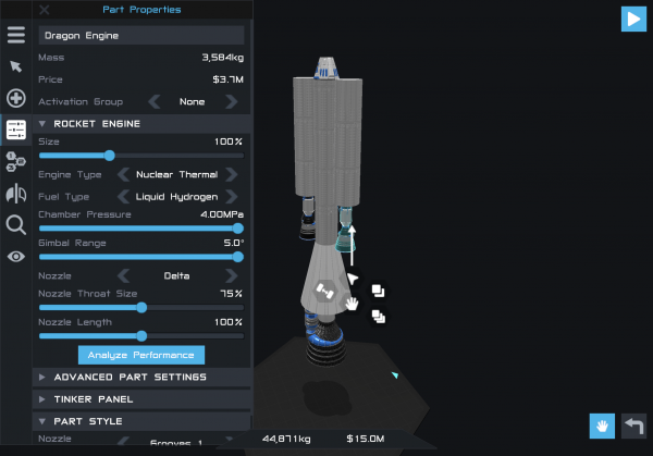 The only real pain point in playing SimpleRockets 2 actually comes from its build mode. As fun as it can be experimenting with all different kinds of parts and designs, actually making them is pretty cumbersome. Building a 3D model using touch controls just seems hard in general. To help with this, SimpleRockets 2 provides a tool you can drag around to let you fine tune parts you're selecting, but using it still pretty unintuitive.
