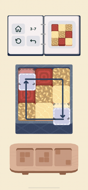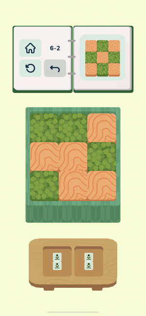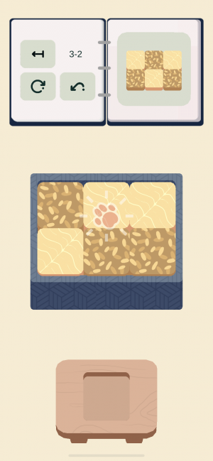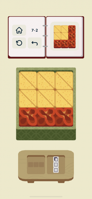 All of these food items are neat little squares, so inbento ends up feeling like a block-stacking game. Put the right blocks in the box in the right order to match the pattern. If at any time you mess up your packing order, you can always tap the screen to undo your last move.