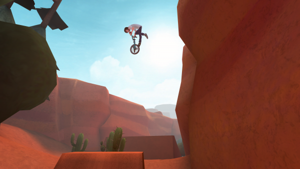 In Trail Boss, you ride a bike through ridiculous outdoor courses that feature lots of ramps for you to do sick tricks off of. These courses are linear, but the goal of riding through them isn't just to finish. Each of these courses has sets of challenges for you to complete on them, like landing specific tricks, riding through gates, hitting targets, or scaring birds off the course.