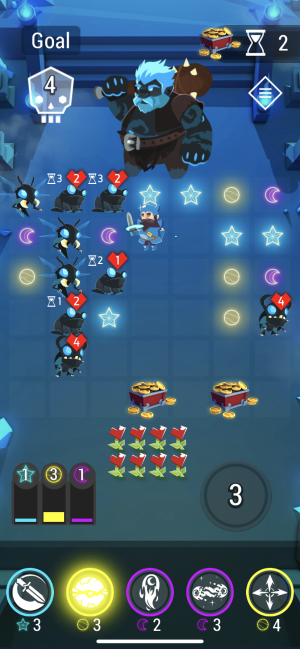 Depending on which level you are on, your objective is either to match a particular number of specific tiles or kill a certain threshold of enemies. To perform these tasks, all you get is three moves per turn to rearrange the board and make matches. When you first start playing, this feels severely limiting. How can you clear advancing rows of up to seven tiles in just three moves? Starbeard's answer is its power system, which grants you all kinds of tricks to kill enemies and manipulate the board, provided you've matched enough tiles to use them.