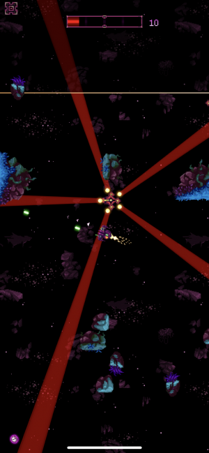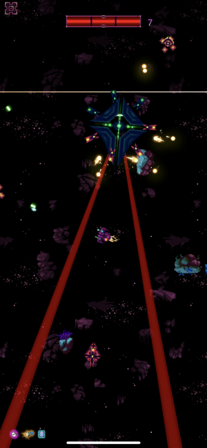 You can control this space-fighting action using one finger. Dragging and holding on the screen points your ship in a direction and determines throttle, and you can swipe in any direction to perform a small boost. Your weapons fire automatically, and heavy weapons fire whenever you release from the screen after a small charge meter has filled.