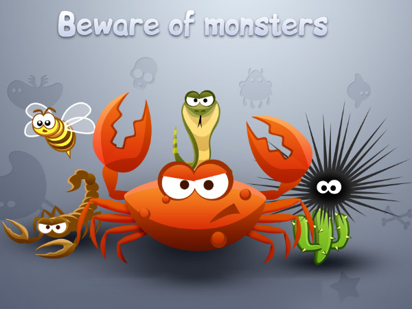 - three monsters: two dangerous moving monsters (Bee and Spider) and one is growing on the platform (Cactus monster);