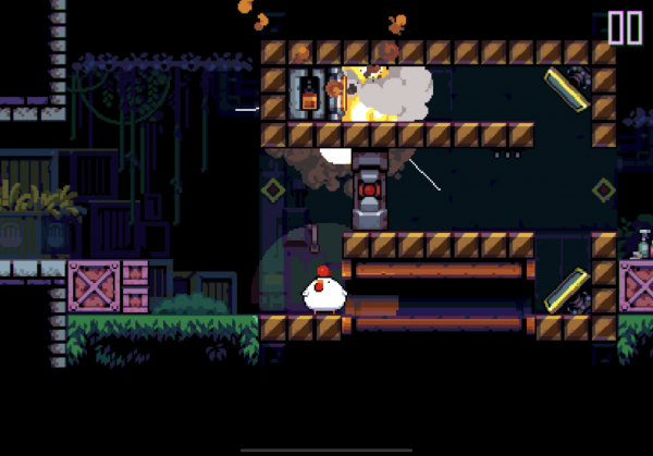 Obviously, standing on bombs is not the safest thing to do, especially when they explode after a few seconds. This is where the source of Bomb Chicken's platforming challenge comes from. Although many levels seem like they'd be a breeze for Mario or other platforming heroes who can jump, your less capable bird has to put itself in danger every time it wants to step up over the smallest ledge, and its up to you to make sure that in doing so, you don't blow things up.