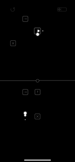 You can't change your stars' trajectory once you've swiped, so instead you have to rely on blocks in the void that can re-direct either star back toward the middle. The first level of the game illustrates this principle in its simplest terms by having you swipe up to send the bottom star toward the center but your top star away from it. Fortunately, there is a block above the top star with a down arrow that sends it back to the center where the stars meet and the level completes.