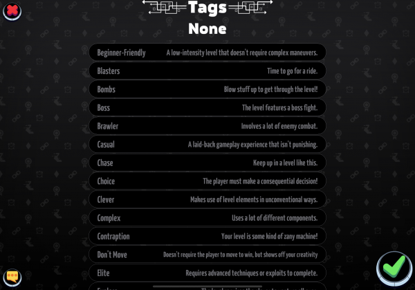 Perhaps the best way that Levelhead distinguishes itself from Mario Maker is in its search and creation tools. User-created levels are separated into two buckets, one of which holds all the newly created levels with low play counts while the other highlights creations that many people have found, played, and enjoyed. The untested area (referred to as the "Marketing Department") has virtually no search tools to encourage players to test out random levels and stumble upon hidden gems while the "Tower" showcases levels that have had enough exposure from The Marketing Department and includes things like tags, filters, playlists, and more that let you find exactly what you're looking to play.