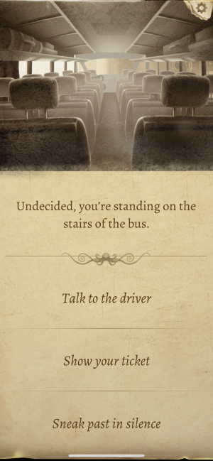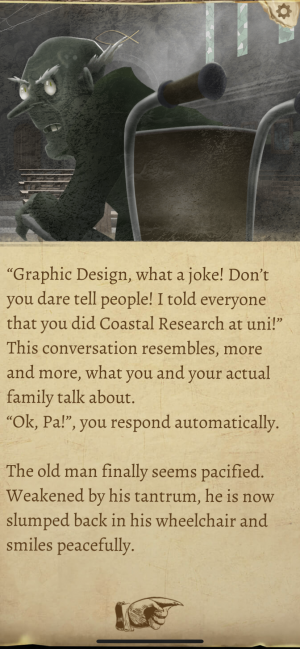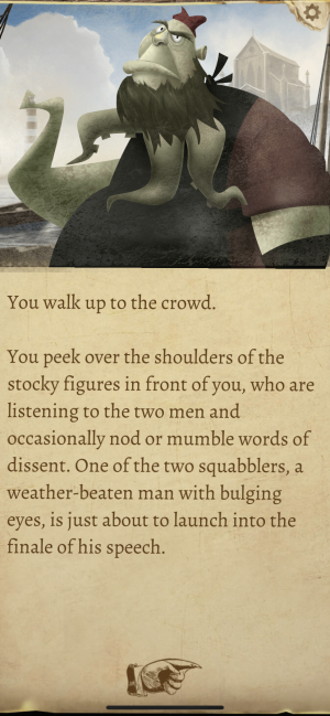 For the most part, this narrative unfolds simply by you tapping through walls of text that describe what's going on in your character's head as he conducts his investigation. Every once in a while though, you get to make a choice about what to do or say next, with the idea being that your choices can lead you to the truth behind this missing person's case and reveal more about what's going on in Innsmouth.
