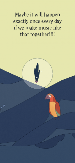 That said, there was a period while playing Bird Alone that I felt stuck in a routine. By the time I worked on my fourth or fifth drawing or poem, I was wondering if the game just progressed in this fashion ad infinitum. Luckily, it's around that time that Bird Alone moves toward its conclusion, which creates a sense of satisfying closure to the whole experience.