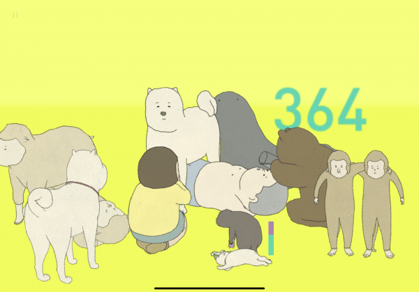 In My Exercise, your task is to make a little boy perform sit-ups by tapping on the screen. Right off the bat you can tell this is no ordinary exercise routine, as each completed sit-up ends with the boy's face pressed firmly into the side of a dog. As you perform these sit-ups, a counter in the background increases, and at certain intervals new things start appearing on screen, like a little girl who claps to cheer you on, or a sheep that wants to do sit-ups with you.