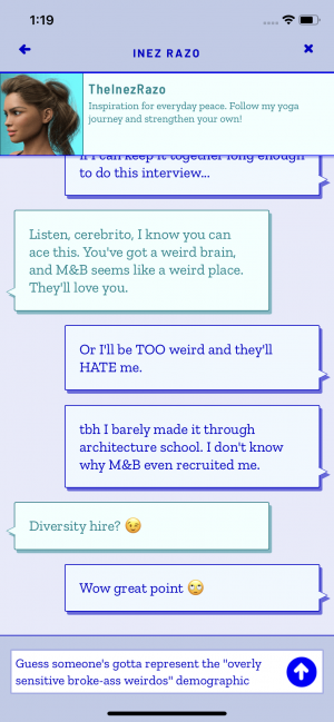 As you upload photos, HoloVista's story develops and progresses via reactions to your posts, updates on your friends' feeds, and direct message conversations that punctuate each chapter in the story. Most of this is doled out fairly linearly, though there are password-protected posts you can unlock and opportunities to re-enter scenes to find more objects if you'd like. The former grants some additional insight into Carmen's experiences, but the latter adds little to the game unless you're looking for a way to find more hidden objects.
