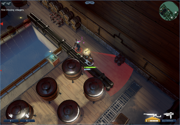 The secret sauce that makes Space Marshals 3 work so well (and all Pixelbite releases, for that matter) is its level design and sleek technical proficiency. Levels in Space Marshals are sprawling playgrounds of tactical cover, resupply points, buildings, and baddies that are on varying levels of alert. Each of these environments is also constructed with replayability in mind, providing multiple paths that support different play styles and combat options. To encourage you to take advantage of this variety, a core aspect of Space Marshals 3 is its loot system, which allows you to unlock and equip Burton with a custom loadout of items for each mission.