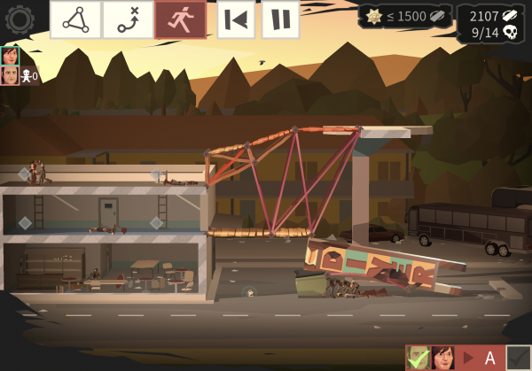Although Bridge Constructor: The Walking Dead has levels about building bridges, there's a surprising amount of challenges that don't revolve around building a strong bridge. Some levels have you issuing orders to survivors to distract zombies, while others involve building elaborate deathtraps for herds of walking dead. Others still might require you build a bridge so that it supports your survivors, but crumbles before your pursuers can use it to give chase.