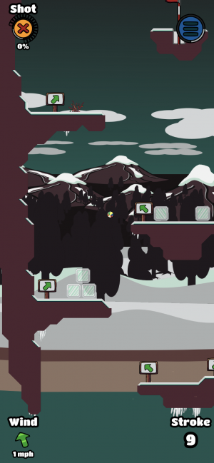 Much like other mobile golf games (think Golf Blitz), Dinkigolf is a 2D game where you trek across vast courses by adjusting the power and aim of your shots to overcome obstacles. The obstacles here definitely include your standard sand traps and water hazards, but can also feature giant blocks of ice, ramps, portals, and more.