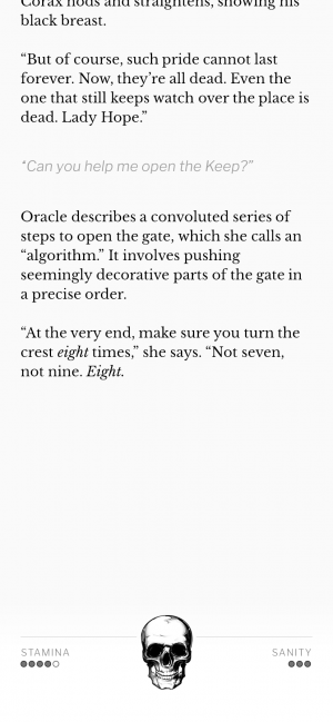 Moving sentence-by-sentence might sound tedious, but Knights of San Francisco has a remarkable way with words and their presentation to the point that it's almost always delightful to tap for your next steps. There's a neat color-fading effect on words as they appear, and the writing itself in this game is both illustrative and direct, making it so you rarely feel like you're just sifting through filler. There are occasional moments where sentences connect in ways that don't mesh super well together, but never so much that you lose the plot. As a game that is clearly stitching together a narrative based on your choice-making, this is bound to happen from time to time.