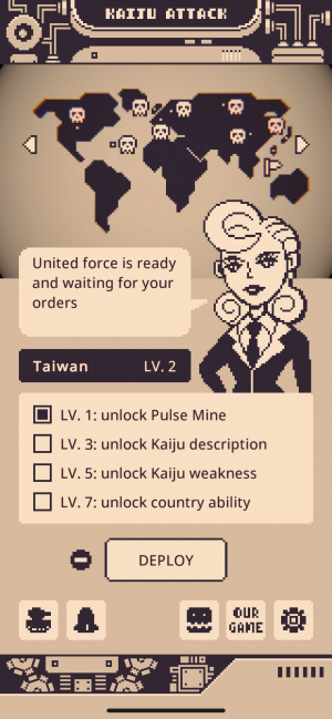 Kaiju Attack is a level-based puzzle game where you pick a location from around the world that is being terrorized by a unique giant monster. There's a giant bear attacking Taiwan, a two-headed hydra destroying the US, a tentacled alien creature wreaking havoc in France, etc. In each of these eight locations, you mission is the same: Protect the country while taking down the monstrous threat.