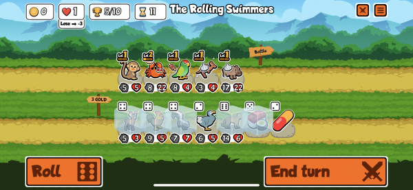 This makes for a game where you have to be careful with your money and try to analyze what is best to spend your money on in any given moment: Is that new animal worth it, or might it be better to power up an existing unit on your team by buying food? Your choices very much determine how well you do in your next fight, and may allow you to move on to continue building up that team or face defeat and start all over again.