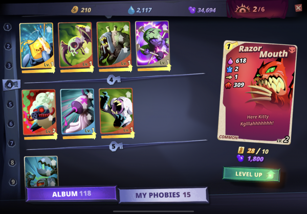 At a certain point, all of the creatures in Phobies just feel like chess pieces, and that would all be well and good if they stayed that way. Too bad this free-to-play games has all sorts of currencies, card packs, and the ability to level up individual cards to make them more powerful than the same ones that other players have.