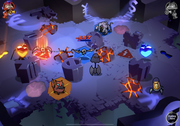 Much like other multiplayer strategy games, Phobies has a supply system that prevents you from summoning any creatures you want any time you want. Each turn, players earn three keys they can spend on new creatures, and then each of those creatures gets two actions per turn for you to position and attack with them to try and assert dominance.
