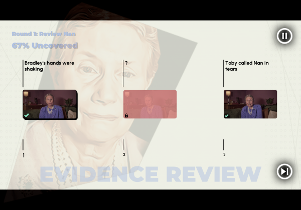 After my second playthrough of the game, I realized that I didn't really care at that point who tried to kill Uncle Marcus. The process of revisiting conversations to unlock new evidence from Abby's cartoonishly horrible family would have been a big ask even if there was a logic to intuit about how to get each character to spill the beans. Instead, some unlocks come by purposely getting certain quiz answers incorrect or not even trying to ask about the family meeting at all. There are also some logic holes I discovered where certain clips talk about information that you may not have actually discovered yet. This all gets exacerbated by the frustrating way in which a clip-skipping system works on repeat playthroughs (which only allows you to pass by certain sections of the game in a blink but makes you watch other segments in their entirety for reasons that don't make a ton of sense).